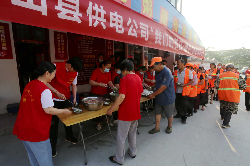 活動當(dāng)天,羅山縣供電公司團(tuán)青志愿者們提前來到羅山縣愛心粥屋,為愛心粥屋奉獻(xiàn)愛心物資及資金,積極開展志愿服務(wù)活動,協(xié)助粥屋工作人員為環(huán)衛(wèi)工人們準(zhǔn)備小米粥、大米飯、各種小菜等早餐食物,依次引導(dǎo)環(huán)衛(wèi)工人們就坐、取餐。待用餐完畢后,該公司志愿者們及時清掃地面、整理桌椅、清洗碗筷等,并向愛心粥屋全員和前來用餐的環(huán)衛(wèi)工人送上端午佳節(jié)的問候和祝福。
