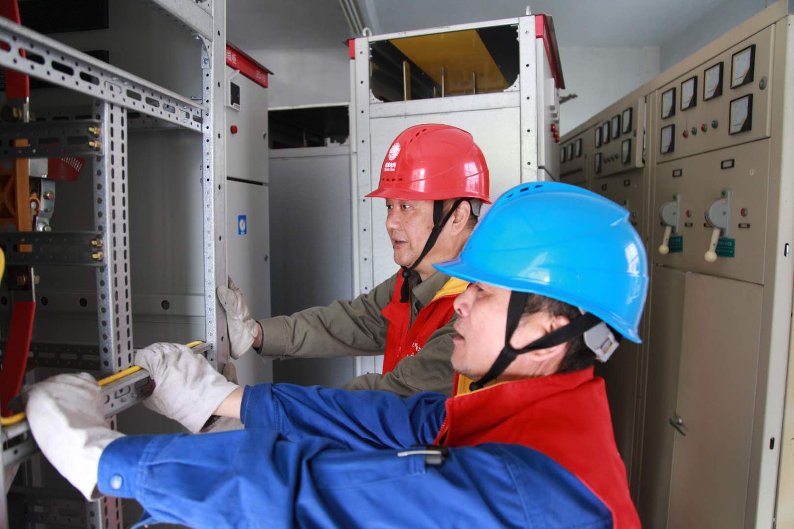 10月24日一大早,國(guó)家電網(wǎng)浙江電力(鄞州)紅船共產(chǎn)黨員服務(wù)隊(duì)隊(duì)員們?cè)缫褋?lái)到東裕小區(qū)一期的施工現(xiàn)場(chǎng),為東裕一期2號(hào)配電室3號(hào)變、4號(hào)變進(jìn)行母線更換、拆搭接地工作。