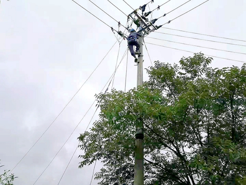 10千伏虎京線梯后山支線,羊圈山配變380伏羊圈山TB3.2號桿(四方桿),倒桿斷線,配電管理所報修人員樂禮培接到95598報修信息,與客戶聯(lián)系后,趕到現(xiàn)場查看,是380伏四方桿,倒桿斷線。從此桿接下戶線3戶,隔離電源,報告領(lǐng)導,需要換桿換線搶修。配電管理所任海忠主任立即組織施工隊到現(xiàn)場進行勘察,確定施工方案,審批搶修物資。受災(zāi)戶楊徳久跟工作人員說:“昨晚上一夜下大雨,6點左右聽到房后蹦的一聲響,我以為是打雷,起床開燈,燈不亮,要燒水,電磁爐也沒有反應(yīng),再轉(zhuǎn)到電表旁看看總閘給跳,嚇我一跳,電表箱懸在空中,電桿倒了,等緩過神來才打95598報修電話。你們報修師傅來到,我心才落下!現(xiàn)在,我高興!感謝供電公司,感謝各位師傅,把電桿換成高的,總線也換成巴掌寬的叫什么線該?”凃師傅告訴他,這叫集束導線。不單只是他們這里,在端午節(jié)期間配電管理所消除了5個安全隱患,提高了供電可靠性。