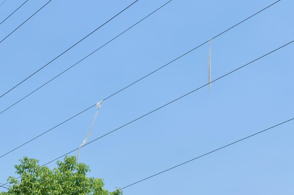 中國電力網(wǎng)訊 8月14日下午,國網(wǎng)余姚市供電公司公司輸配電運檢中心員工巡視線路時發(fā)現(xiàn),在陸埠鎮(zhèn)工業(yè)園區(qū)35千伏洲車3825線23至24號塔之間的線路上有兩股異物纏繞,一旦連接兩根導線,極易引發(fā)線路跳閘,危及電網(wǎng)安全穩(wěn)定運行。