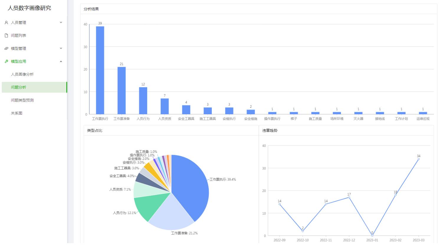 “人員數(shù)字畫像系統(tǒng)建模就是將作業(yè)人員信息的標(biāo)簽化,通過(guò)搭建智能計(jì)算評(píng)價(jià)系統(tǒng),自動(dòng)提取歷史違章數(shù)據(jù)進(jìn)行分析計(jì)算,能夠全面細(xì)致地展現(xiàn)作業(yè)人員的信息全貌,并提出針對(duì)性培訓(xùn)建議,還可以從違章單位、類別以及頻次等多維度以圖表展示數(shù)據(jù)分析結(jié)果,大大解放了以往人工歸類統(tǒng)計(jì)分析的勞動(dòng)力。”余姚市宏宇輸變電工程公司安監(jiān)部項(xiàng)目負(fù)責(zé)人介紹該系統(tǒng)時(shí)津津樂(lè)道。