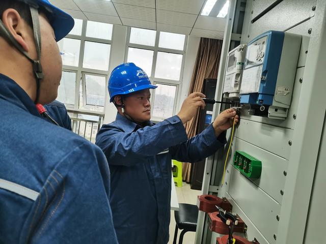 他總結(jié)出裝表接電“七步法”:第一步,安裝就位。將電能表、負(fù)荷管理終端、電流互感器、聯(lián)合接線盒等設(shè)備安裝就位,布置原則是電能表與聯(lián)合接線盒之間的垂直距離為15厘米,互感器之間的水平距離為15厘米。第二步,下料。根據(jù)互感器、聯(lián)合接線盒、電能表、負(fù)荷管理終端之間的距離按照黃、綠、紅、黑的相色對線材下料,并留有一定的裕度。第三步,綁扎。這一過程中嚴(yán)禁出現(xiàn)交叉。捆扎導(dǎo)線時(shí),對應(yīng)的3根黃、綠、紅導(dǎo)線和1根黑導(dǎo)線按照3-4-3的位置排列,即黃、紅兩色在外層,綠、黑兩色在內(nèi)層,黑色靠外。第四步,走向。各個(gè)彎折點(diǎn)用扎帶捆扎,對齊后按預(yù)留8-10mm的長度剪齊。第五步,接入接線盒。將線頭按1.5-2mm的長度剝?nèi)ソ^緣層,套上號頭后與接線盒連接,擰緊螺絲。第六步,接互感器。線圈的做法,將導(dǎo)線折彎90度,用尖嘴鉗彎成半圓,再換一下手彎成圓形。線圈以順時(shí)鐘鉗入。第七步,按照接線盒到電能表和負(fù)荷管理終端之間的距離依次分色拆線接入。