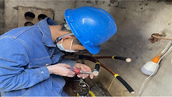 “進入電纜井前一定要檢測有限空間內(nèi)氣體含量是否符合標(biāo)準(zhǔn),注意安全。”在工作負(fù)責(zé)人劉伯彥的提醒下,“全副武裝”的工作人員順著爬梯進入電纜井。在落實防疫措施的同時,明確工作任務(wù),清楚危險點,確認(rèn)安全措施無誤,仔細核對線路名稱,確保工作人員“零違章”作業(yè)。這次工作的難點是要在9.5小時內(nèi)完成4個熔接接頭的更換工作,電纜井內(nèi)空間狹窄,電纜錯綜復(fù)雜,分為3個小組同時進行,時間緊任務(wù)重,這不僅需要合理的檢修方案,更需要每位工作人員的高效配合,必須在批準(zhǔn)的停電時間內(nèi)完成,對檢修人員的技術(shù)水平、體能狀態(tài)也是一個較大的考驗。