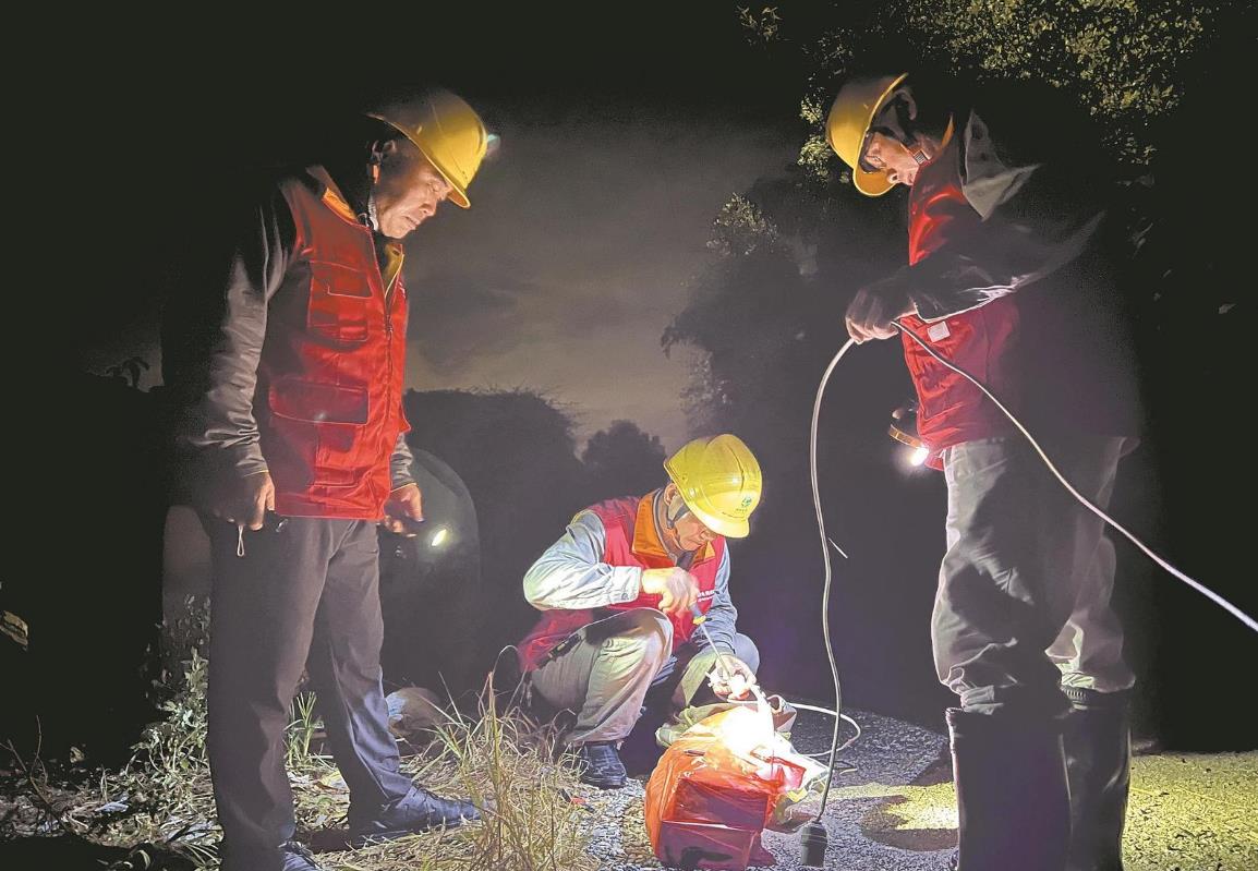 綿陽(yáng)供電公司增援平武縣電網(wǎng)搶險(xiǎn)人員搶修10千伏黃羊線受損線路,于7月27日19時(shí)恢復(fù)線路供電。田海 攝
