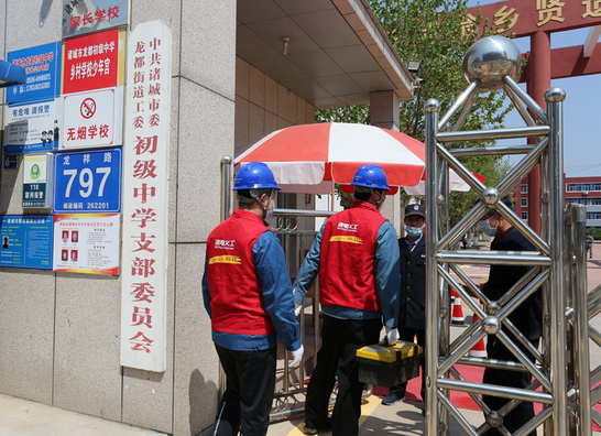 中國(guó)電力網(wǎng)訊 近日,山東省教育廳發(fā)布“山東初中畢業(yè)年級(jí)開(kāi)學(xué)時(shí)間確定”的通知,我省初中畢業(yè)年級(jí)原則上在5月6日至10日期間開(kāi)學(xué),為確保返校復(fù)課期間學(xué)校師生用電無(wú)憂,五一前夕,國(guó)網(wǎng)諸城市供電公司彩虹共產(chǎn)黨員服務(wù)隊(duì)和青年志愿者走進(jìn)校園、走進(jìn)教室,查隱患、問(wèn)需求,把脈問(wèn)診助力復(fù)學(xué)復(fù)課。