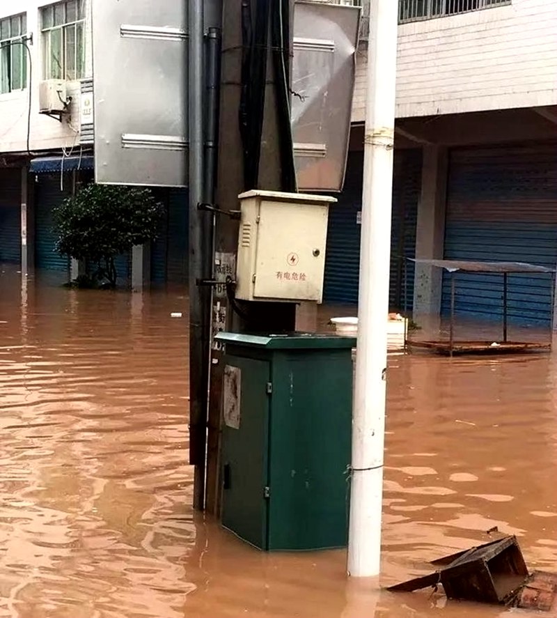 中午12時(shí)25分,沒(méi)過(guò)涵水鎮(zhèn)街道的洪水逐漸退去,國(guó)網(wǎng)平昌縣供電公司共產(chǎn)黨員服務(wù)隊(duì)迅速進(jìn)入現(xiàn)場(chǎng)對(duì)受損電力設(shè)備進(jìn)行排查檢修,排除安全隱患,經(jīng)過(guò)連續(xù)5個(gè)多小時(shí)的緊急搶修,更換修復(fù)受損設(shè)備17臺(tái),排除安全隱患53處,7個(gè)停電臺(tái)區(qū)全部恢復(fù)用電。