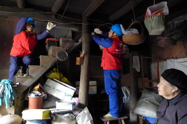 而在海拔600多米的雙峰山區(qū)榧坑村,高度近視的69歲孤寡老人胡士堆,終于因一盞“明燈”再也不用撞頭撞腳了,岔路供電所的紅船黨員服務(wù)隊(duì)隊(duì)員胡雨松等人不僅幫助老人清掃房屋,更換室內(nèi)線路、開關(guān),還特意在灶前、床邊裝上了兩盞高亮度的節(jié)能燈,這讓胡士堆老人高興得紅光滿面