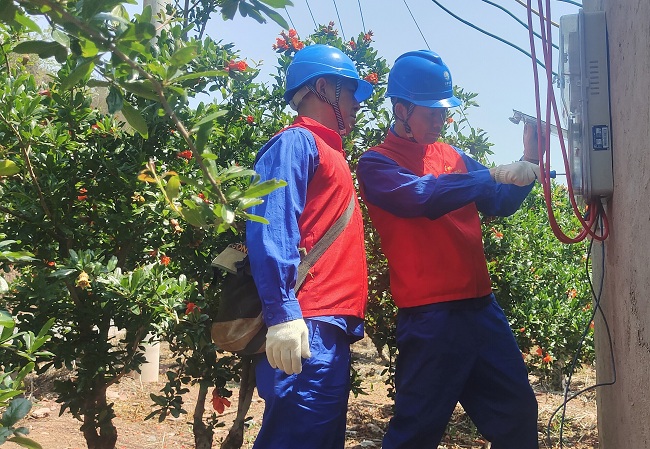 為了保證石榴灌溉供電無虞,國網(wǎng)會理市供電公司提前謀劃,組織黨員服務隊開展“黨建+石榴保供”活動,主動將服務送到田間地頭,零距離了解榴農(nóng)當前用電情況和石榴灌溉用電需求。隊員們對涉及灌溉用途的配變、線路等電力設施進行巡視檢查和維護檢修,對榴農(nóng)的小型配電房、線路、水泵設備等進行檢查,幫助其分析存在的安全用電隱患和苗頭性問題,有效解決灌溉用電方面的“疑難雜癥”。