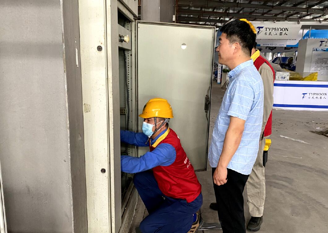 悶熱的黃梅天,汗水很快就浸濕了工作人員工作服,一旁的展館工作人員請(qǐng)工作人員到旁邊房間喝點(diǎn)茶休息一下,工作人員卻絲毫沒(méi)有要停下來(lái)的意思。“因?yàn)檎箷?huì)有注塑機(jī)等大型用電設(shè)備,在檢查時(shí),內(nèi)部線路也要格外注意,時(shí)間緊張,我們就不休息了。”韓高權(quán)說(shuō)道。