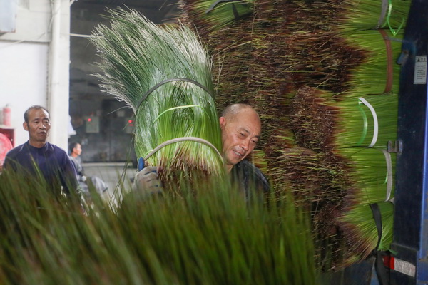藺草是寧波海曙區(qū)的傳統(tǒng)經(jīng)濟特產(chǎn),也是出口創(chuàng)匯的主要農(nóng)產(chǎn)品。目前有各類藺草加工企業(yè)80余家,產(chǎn)業(yè)規(guī)模達20億元,聯(lián)系帶動農(nóng)戶3萬余戶,是全國最大的藺草生產(chǎn)和出口基地。眼下正是藺草收割的黃金季節(jié),“割草客”們從全國各地趕來,開啟為期一個月的藺草收割之旅。“在這里干一個月時間,差不多能有近萬元的收入。”來自江西的“割草客”說道。