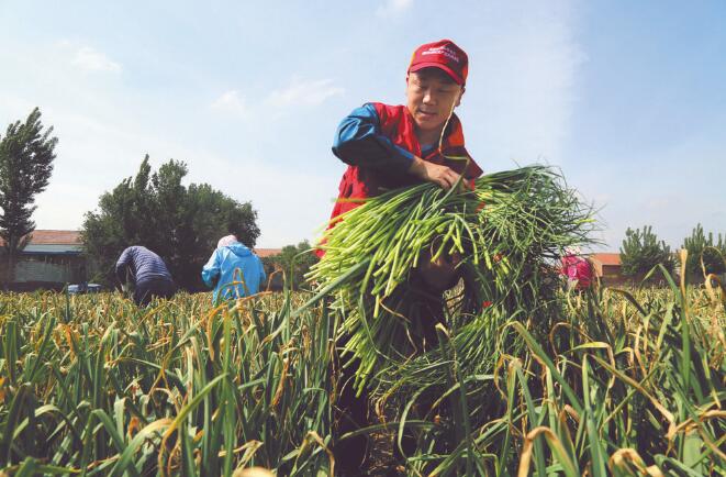2017年年初,白橋鎮(zhèn)引入“龍頭企業(yè)+基地+合作社+農(nóng)戶(hù)”的發(fā)展模式。大蒜深加工龍頭企業(yè)與村里的合作社、大蒜種植大戶(hù)簽訂協(xié)議,保價(jià)收購(gòu)大蒜,并將大蒜加工成價(jià)值更高、便于運(yùn)輸和儲(chǔ)存的產(chǎn)品,讓當(dāng)?shù)胤N植戶(hù)增收。