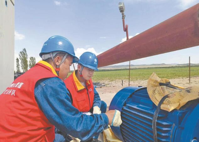 黨員服務(wù)隊(duì)隊(duì)員幫助種植戶(hù)檢查灌溉用電設(shè)備。 李敏康 攝