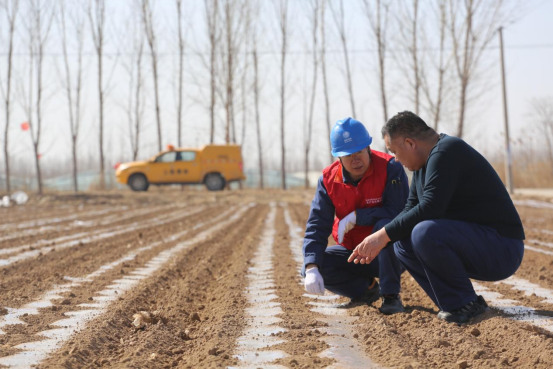眼下,正值西瓜的膨果期,郝建正根據(jù)土壤濕潤程度使用滴灌設(shè)備進行澆灌,就迎來了電力“紅馬甲”的上門服務(wù)。