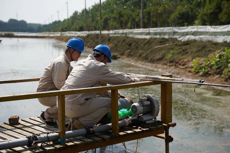 本網(wǎng)訊 連日來,國網(wǎng)江蘇電力睢寧縣供電公司工作人員來到魏集鎮(zhèn),對水產(chǎn)養(yǎng)殖戶用電設(shè)備開展隱患排查,重點(diǎn)對充氧設(shè)備、漏電保護(hù)裝置進(jìn)行安全檢查,同時(shí)向客戶了解用電需求,講解安全用電注意事項(xiàng),為水產(chǎn)養(yǎng)殖戶致富增收提供可靠電力保障。