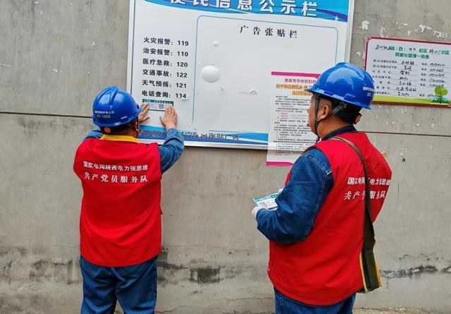 為持續(xù)做好優(yōu)質(zhì)服務(wù)工作,暢通服務(wù)渠道,將服務(wù)關(guān)口前移,真正實(shí)現(xiàn)“全方位、全覆蓋、零距離”溝通,10月20日,國網(wǎng)渭南供電公司組織黨員服務(wù)隊(duì)、相關(guān)臺區(qū)經(jīng)理在老舊小區(qū)、人流集中地點(diǎn)發(fā)放供電服務(wù)貼,在電表箱醒目位置、小區(qū)公示欄進(jìn)行張貼。一張小小電力服務(wù)貼,除了印有臺區(qū)經(jīng)理電話、微信二維碼外,還附有供電所24小時(shí)服務(wù)搶修電話、“網(wǎng)上國網(wǎng)”APP下載碼。