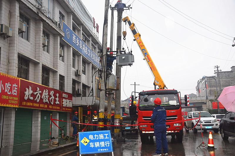 12月25日,冬雨霏霏、寒風瑟瑟,在陜西省西鄉(xiāng)縣北環(huán)路上,一群電力工人正在站前廣場配變臺區(qū)開展更換導線、變壓器等項搶修工作,工作負責人一邊有序的組織工作,一邊耐心的安撫周圍的群眾。
