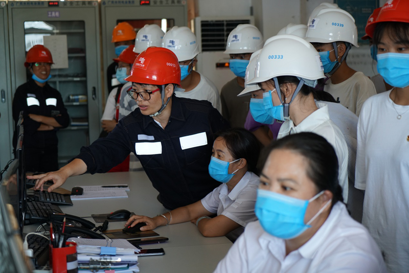 當(dāng)天下午,在富川縣公司調(diào)度控制中心一樓大廳,為讓學(xué)生們感受新時(shí)代南網(wǎng)人工作環(huán)境,活動(dòng)特別設(shè)置了戴安全帽體驗(yàn)區(qū)。“安全帽是電力工人的保護(hù)裝置之一,主要作用是防墜物、防觸電、保護(hù)頭部等……”富川縣公司安監(jiān)部副主任、講解員張佩燕向大家一一介紹安全帽的用處,并現(xiàn)場做了佩戴安全帽演示。在現(xiàn)場,縣融媒體中心記者也博有興趣的體驗(yàn)了一番。短短幾分鐘體驗(yàn),當(dāng)摘下安全帽擦完滿頭汗后,他深有感觸的說,“實(shí)在太熱了!電力工人真是辛苦!”現(xiàn)場不少學(xué)生都表示,真的可以想象到電力工人在高溫酷暑下工作的艱辛程度。