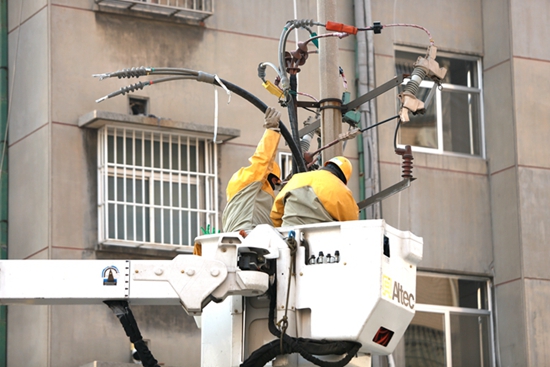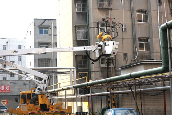 中國電力網(wǎng)訊 1月6日,濰坊市壽光地區(qū)氣溫出現(xiàn)“斷崖式”下跌,氣溫降至零下17攝氏度。在壽光市圣城街道某小區(qū),國網(wǎng)壽光市供電公司帶電作業(yè)人員冒著嚴(yán)寒對10千伏城一線115號臺(tái)區(qū)帶電更換電纜,進(jìn)一步提升線路安全供電能力,為小區(qū)居民冬季電采暖用電提供堅(jiān)強(qiáng)保障。