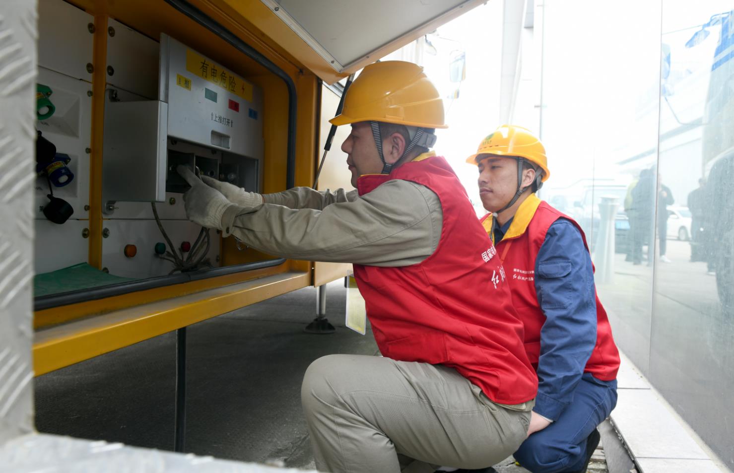 中國電力網(wǎng)訊(通訊員苗云夢、秦蕾)3月27日下午,一臺黃色的400千伏安的自備電源車勻速駛?cè)胫兴車H會展中心,車輛停妥后,國家電網(wǎng)浙江電力(余姚)紅船共產(chǎn)黨員服務(wù)隊隊員陳啟鵬從工具箱里拿出工具,輕車熟路地開始連接電源線,進行移動電源車調(diào)試,為塑博會開幕式用電保駕護航。