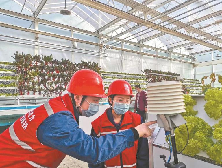 正定縣供電公司員工檢查大棚電氣化設備。王璞詩 攝