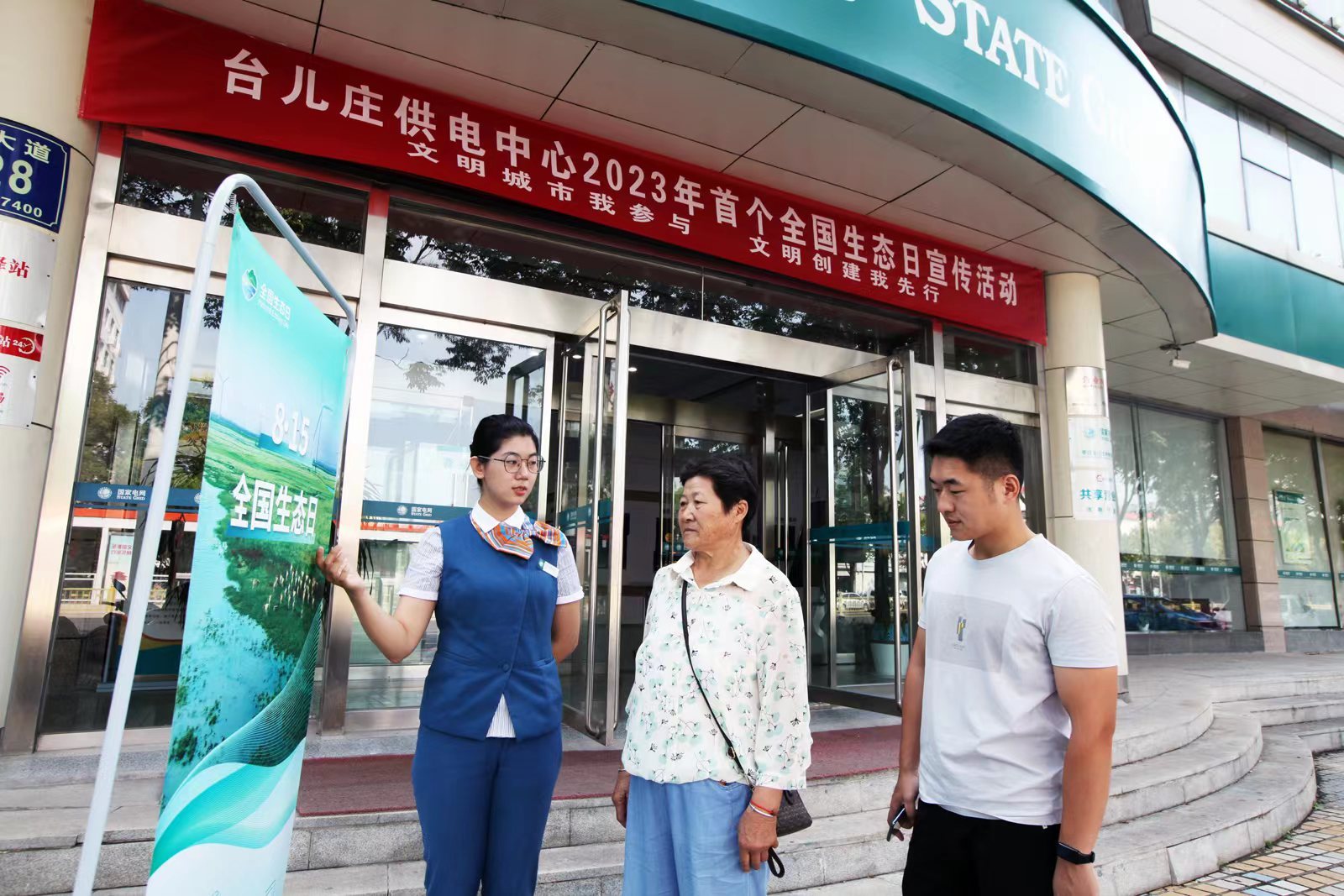 “我們要愛護自己的家園,共創(chuàng)綠色生活,共享綠色家園,都來做生態(tài)環(huán)境保護的宣傳者、實踐者、推動者……”8月15日,首個“全國生態(tài)日”來臨之際,國網(wǎng)棗莊供電公司臺兒莊供電中心組織開展了“綠水青山就是金山銀山”主題宣傳教育活動。