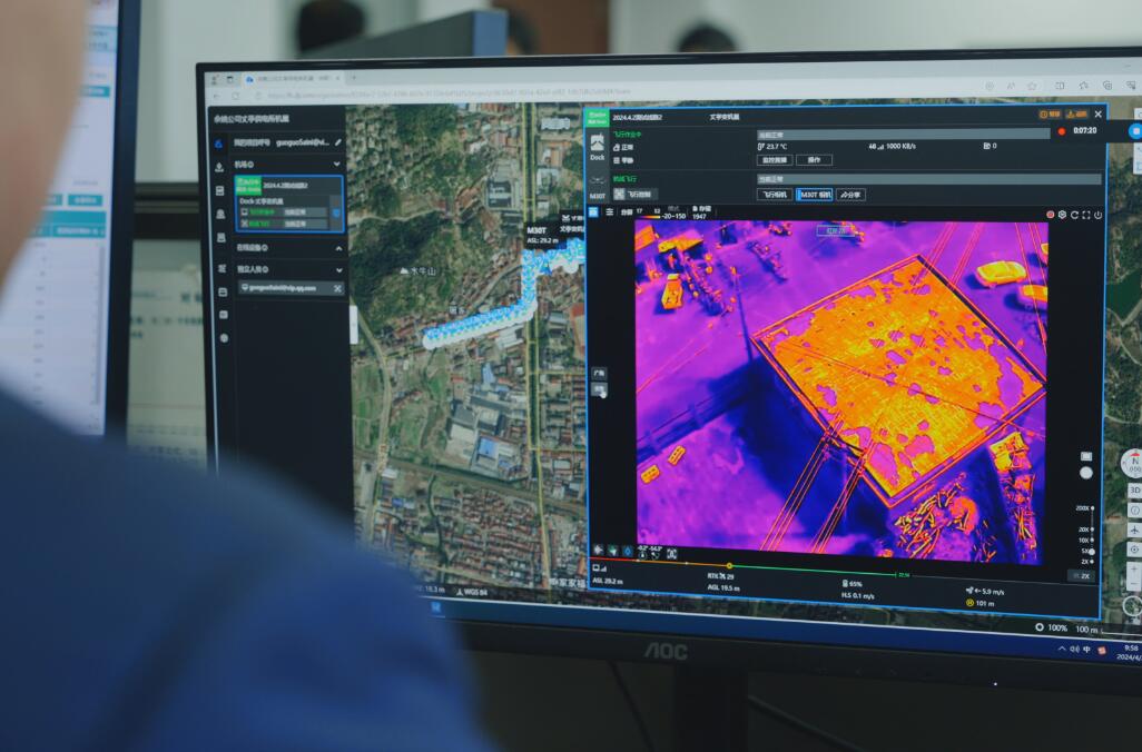 當天,安裝在110千伏丈亭變門前的無人機巢緩緩打開,一架無人機自動升空,沿著設定好的路線徑直飛去。同時,無人機拍攝的畫面成功回傳到公司運檢部電腦平臺,通過“實景”和“紅外”功能切換,可以直接監(jiān)測到是否有起火點,以“機器代人”極大提高了火災隱患的排查效率。