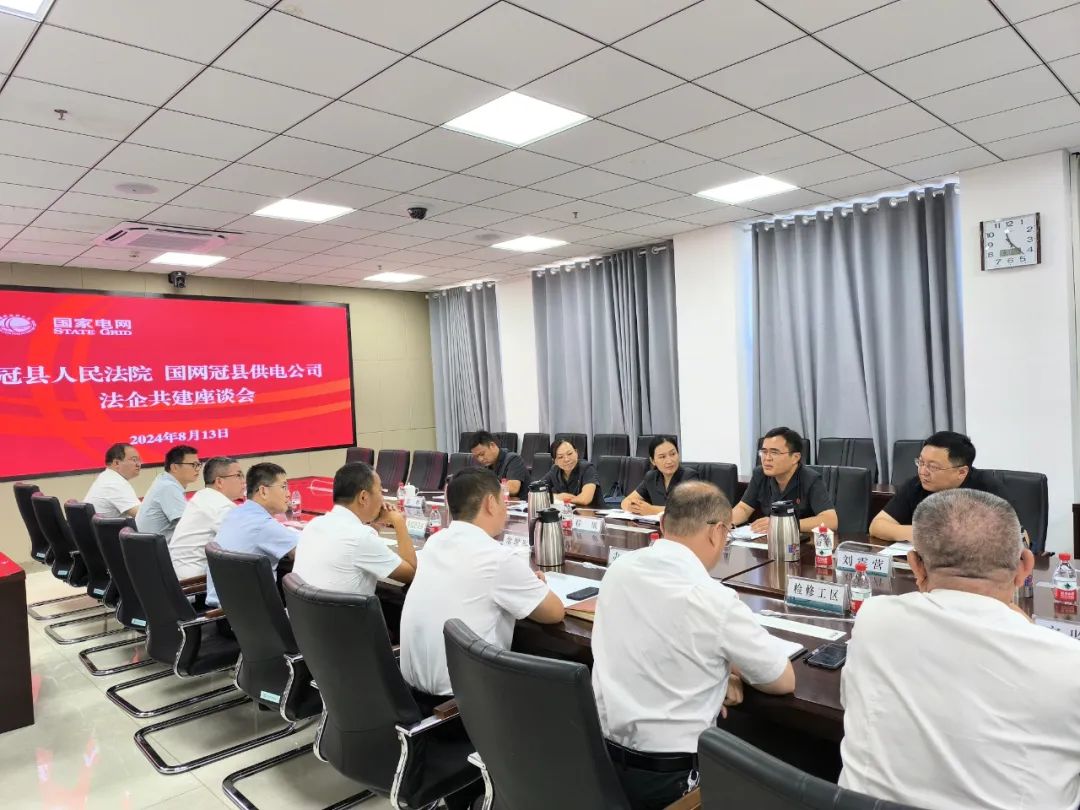為進(jìn)一步優(yōu)化法治營商環(huán)境,滿足企業(yè)日益增長的司法需求,8月13日,冠縣法院與國網(wǎng)冠縣供電公司召開法企共建座談會。國網(wǎng)冠縣供電公司黨組書記常增軍、冠縣法院刑庭庭長程敏、民二庭負(fù)責(zé)人李彥華及相關(guān)人員參加座談。