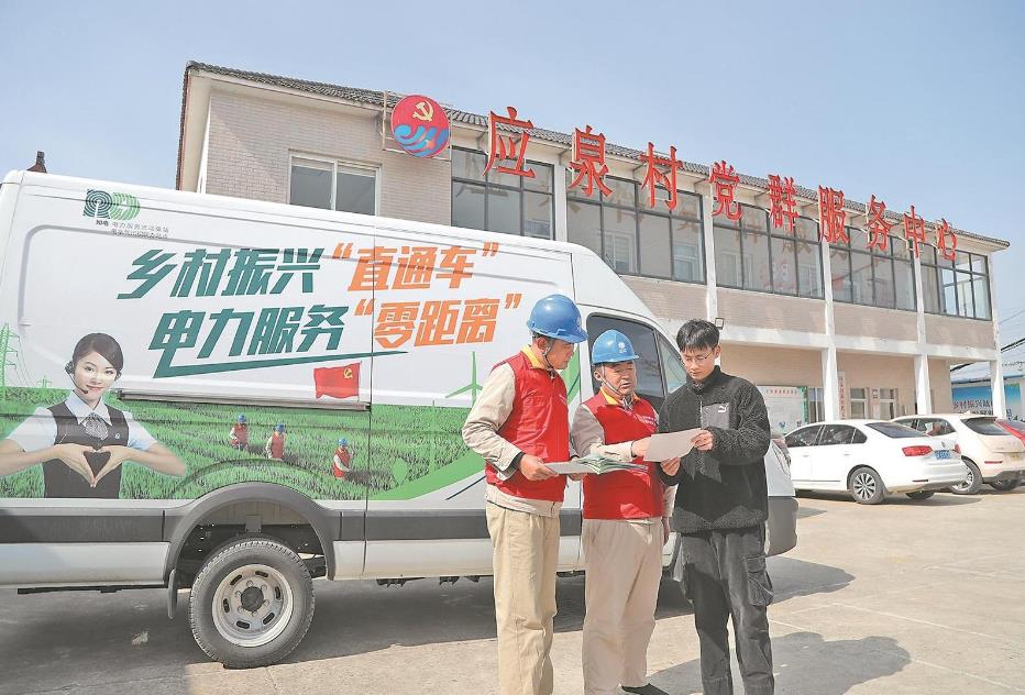 2024年4月20日,國(guó)家電網(wǎng)江蘇電力(如東公司退役軍人)共產(chǎn)黨員服務(wù)隊(duì)隊(duì)員來(lái)到如東縣曹埠鎮(zhèn)應(yīng)泉村開(kāi)展電力便民服務(wù)。張浩 攝