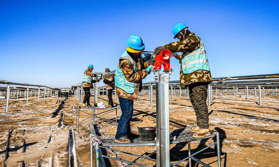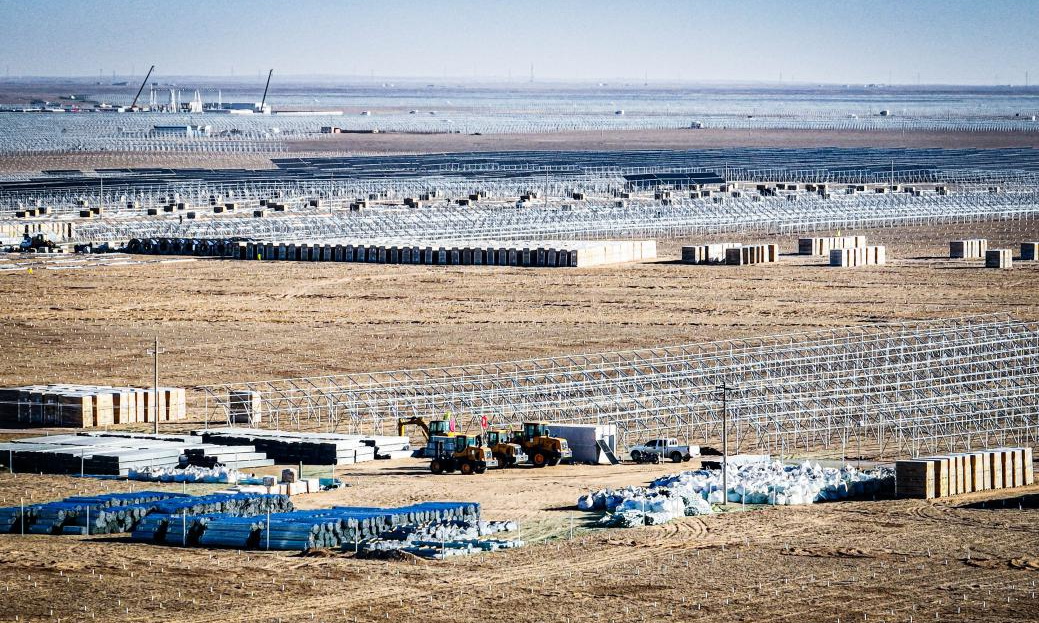 蒙陜寧三省交界的毛烏素沙地腹部,國家能源集團國電電力蒙西鄂爾多斯采煤沉陷區(qū)300萬千瓦光伏基地項目建設如火如荼。作為國家第二批以沙漠、戈壁、荒漠地區(qū)為重點的大型光伏基地項目之一,10.5萬畝的“光伏海洋”每年將把近57億度綠色電能從蒙西戈壁輸送至黃海之濱,滾滾電流跨越1300多公里長途跋涉,將有效緩解山東這個東部沿海工業(yè)大省的電力缺口,為東部地區(qū)的經(jīng)濟社會發(fā)展提供強大的綠色能源保障。該項目已完成175萬千瓦容量樁基施工,65萬千瓦容量支架施工,25萬千瓦容量組件安裝,1號升壓站已具備并網(wǎng)條件。
