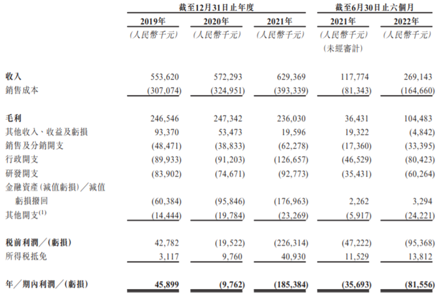 招股書顯示,2019年至2021年,億華通營收分別為約5.54億元、5.72億元、6.29億元,期內(nèi)利潤分別為約4589.9萬元、-976.2萬元、-1.85億元。進入2022年,億華通在上半年的營收和期內(nèi)利潤分別達到2.69億元及-8155.6萬元。