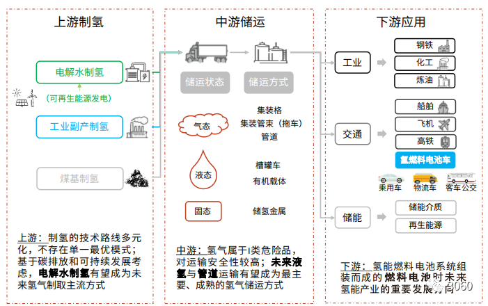 氫能產(chǎn)業(yè)鏈主要由上游制氫—中游儲(chǔ)運(yùn)—下游應(yīng)用組成。