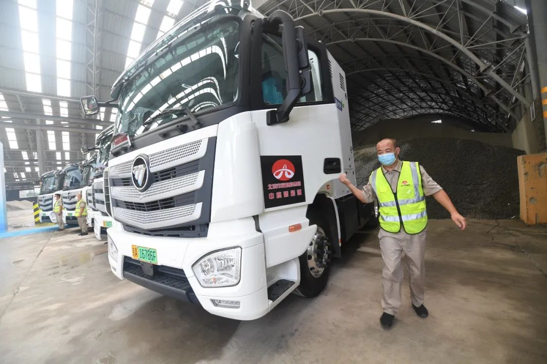 2022年7月5日,北京市首批40輛氫燃料重卡落地大興區(qū),正式交車投入瀝青混凝土供料運輸(圖片來源:視覺中國)