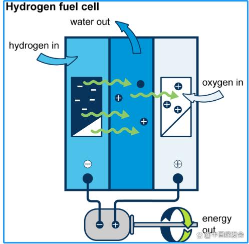 (氫燃料電池的工作原理圖,包括輸入和輸出。圖源:美國能源部能源信息管理局)