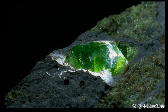 (鎂橄欖石,一種橄欖石礦物。地下水與橄欖石相互作用會(huì)導(dǎo)致氫氣在周圍巖層中積聚。圖片來源:史密森尼國家自然歷史博物館。)
