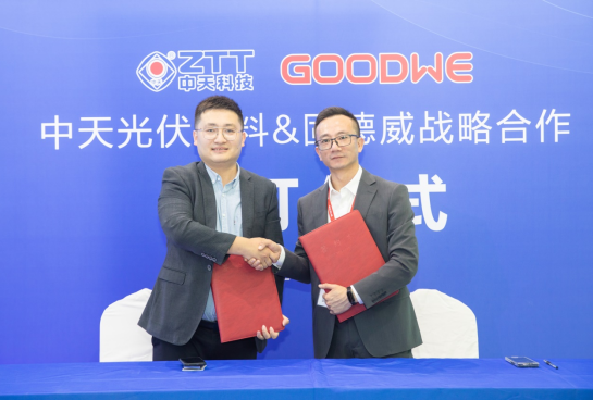 展會現(xiàn)場,中天科技與固德威電源科技簽訂戰(zhàn)略合作協(xié)議,在新能源業(yè)務(wù)系統(tǒng)解決方案、資源開發(fā)等方面進(jìn)一步深化合作,實現(xiàn)優(yōu)勢互補(bǔ)、共贏發(fā)展。