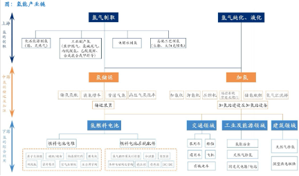 產(chǎn)業(yè)鏈視角來看,氫能源產(chǎn)業(yè)鏈包括制氫端、儲運端、應用端(包括氫燃料電池及其他各類應用)。與鋰電池產(chǎn)業(yè)鏈相比,氫能源產(chǎn)業(yè)鏈更長,復雜度更高,商業(yè)化前景廣闊。