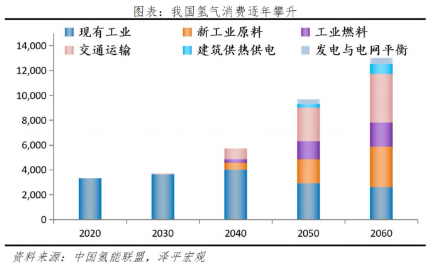 根據(jù)2021年1月8日召開的第三屆中國制氫與氫能源產(chǎn)業(yè)發(fā)展大會,2020年我國產(chǎn)氫量超過2500萬噸,基本全部用于工業(yè)過程領域;根據(jù)中國氫能聯(lián)盟的預計,2060年氫氣需求量達1.3億噸,其中交通運輸領域用氫4051萬噸(約總氫需求31%)。燃料電池作為氫能下游應用的突破口,其大規(guī)模推廣成功與否對氫能產(chǎn)業(yè)鏈是否能成功邁進商業(yè)化階段具有重大影響。