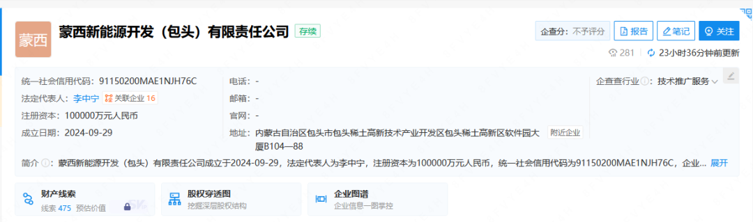 近日,蒙西新能源開發(fā)(包頭)有限責(zé)任公司成立,法定代表人為李中寧,注冊資本10億元,經(jīng)營范圍包含:站用加氫及儲氫設(shè)施銷售;高性能有色金屬及合金材料銷售;有色金屬合金制造等。