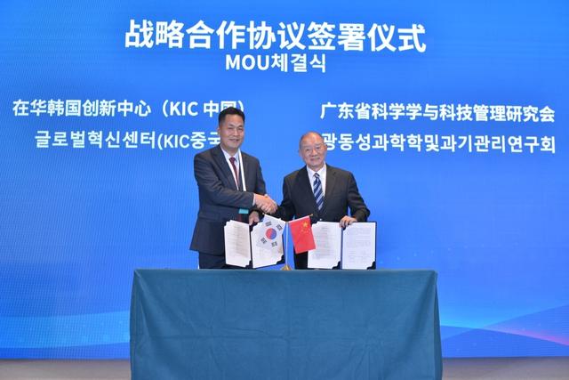 本次論壇由廣東省科學(xué)學(xué)與科技管理研究會(huì)(GSTMR)、在華韓國(guó)創(chuàng)新中心(KIC中國(guó))共同主辦。論壇上,廣東省科學(xué)學(xué)與科技管理研究會(huì)與在華韓國(guó)創(chuàng)新中心(KIC中國(guó))共同簽署戰(zhàn)略合作協(xié)議,翻開合作新篇章。雙方將按照此次論壇達(dá)成的共識(shí),全力協(xié)調(diào)各方力量,每年定期舉辦相關(guān)方面的高層次研討活動(dòng),進(jìn)一步推動(dòng)相關(guān)科技成果在大灣區(qū)加速落地轉(zhuǎn)化。