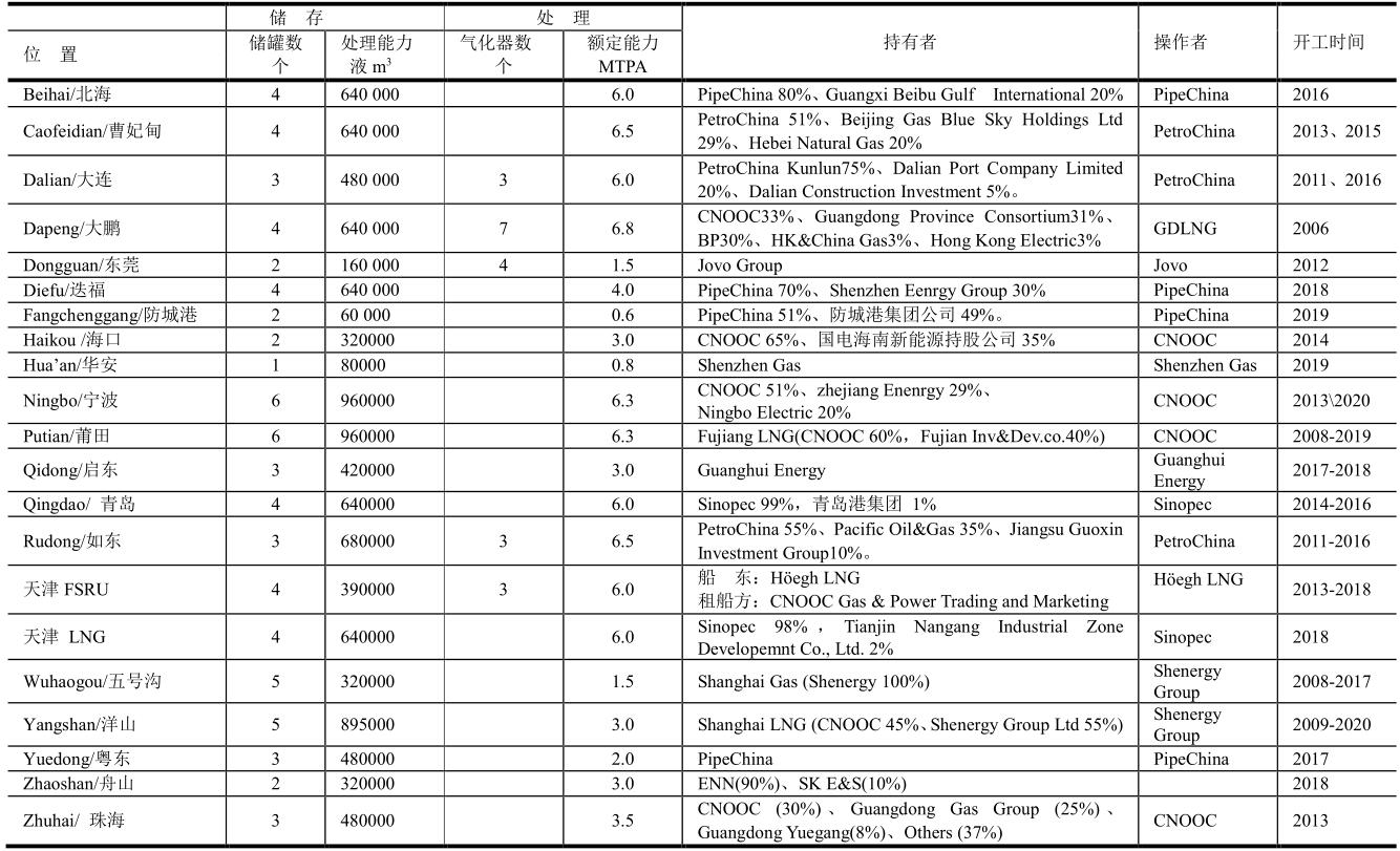 2020年中國LNG接收站