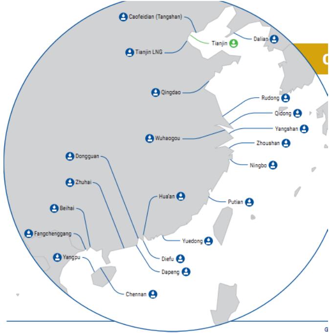 曹妃甸、寧波、莆田、啟東、青島、如東等現(xiàn)有碼頭正在進(jìn)行擴(kuò)建工程。預(yù)計(jì)到2021年,這些擴(kuò)建將增加超過15 MTPA氣化能力。2018年LNG儲罐罐容約53億立方米。