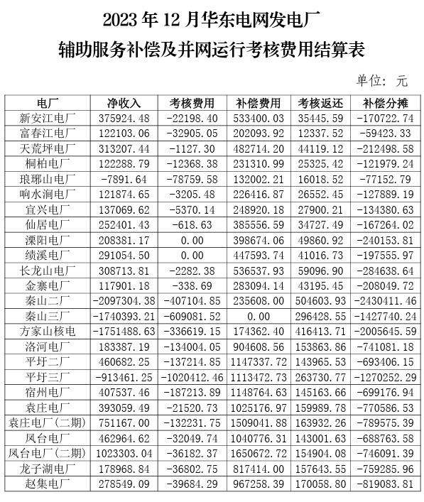 附件:2023年10-12月華東電網(wǎng)發(fā)電廠輔助服務(wù)補償及并網(wǎng)運行考核費用結(jié)算表。