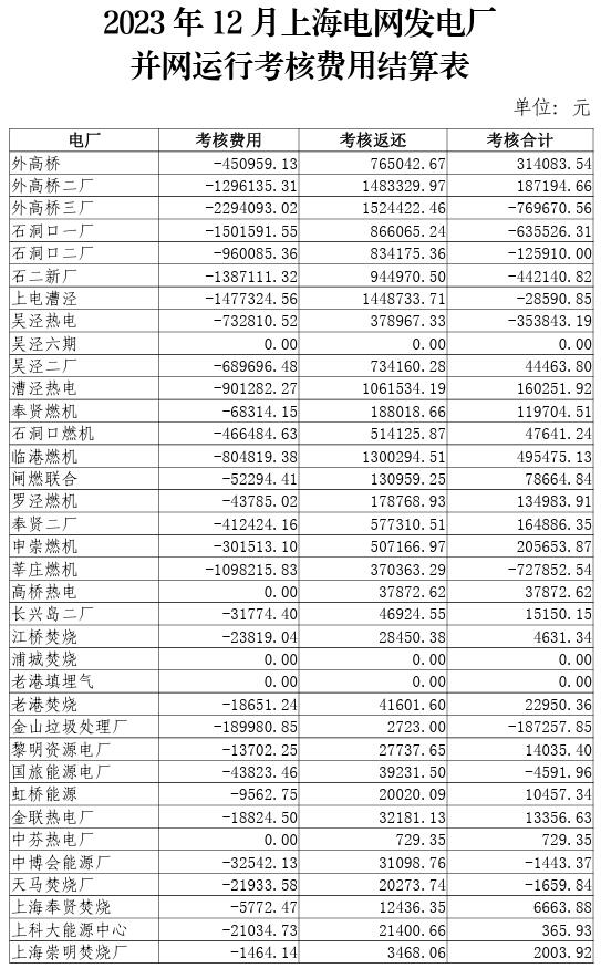 2023年10-12月上海電網(wǎng)發(fā)電廠并網(wǎng)運行考核結(jié)果公示