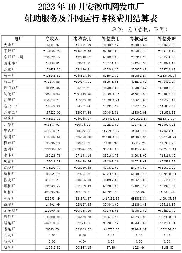 附件:2023年10-12月安徽電網(wǎng)發(fā)電廠輔助服務(wù)及并網(wǎng)運行考核費用結(jié)算表