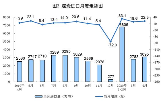 原煤生產(chǎn)增長較快。4月份,生產(chǎn)原煤3.2億噸,同比增長6.0%,增速比上月回落3.6個(gè)百分點(diǎn);日均產(chǎn)量1074萬噸,環(huán)比減少14萬噸。1—4月份,生產(chǎn)原煤11.5億噸,同比增長1.3%。