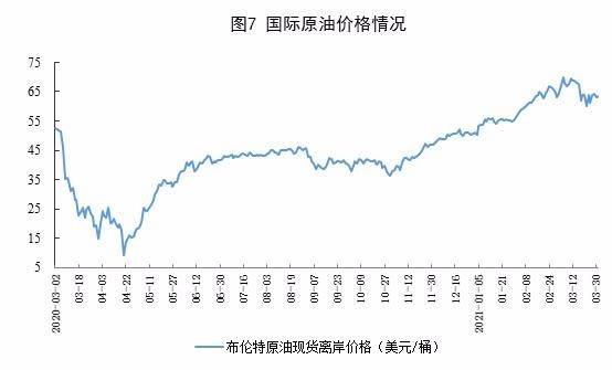 原油進(jìn)口大幅增長,國際原油價(jià)格基本穩(wěn)定。3月份,進(jìn)口原油4966萬噸,同比增長20.8%;一季度,進(jìn)口原油13923萬噸,同比增長9.5%。3月31日布倫特原油現(xiàn)貨離岸價(jià)格為63.52美元/桶,比3月1日的64.56美元/桶下跌1.6%。