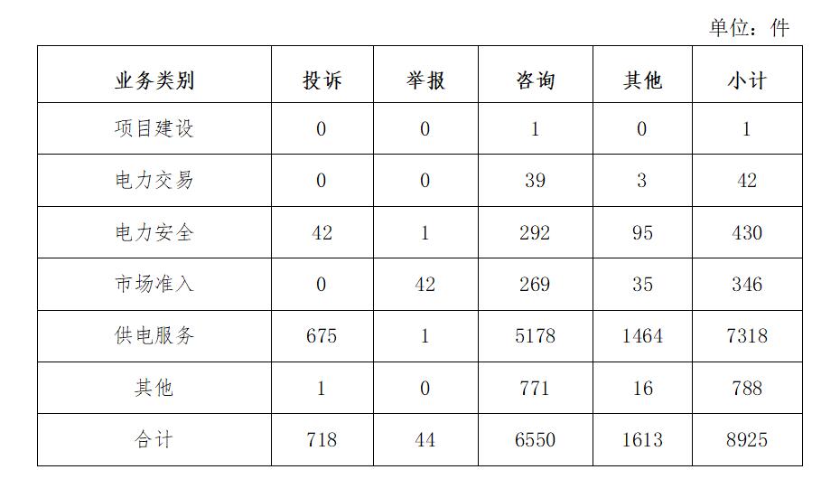 2023年1月共收到投訴舉報(bào)事項(xiàng)781件,根據(jù)國(guó)家有關(guān)法律法規(guī)規(guī)定,國(guó)家能源局派出機(jī)構(gòu)對(duì)屬于監(jiān)管職責(zé)范圍的696件進(jìn)行了受理,占投訴舉報(bào)量的89.11%;其他根據(jù)相關(guān)規(guī)定不予受理的,已按照有關(guān)規(guī)定進(jìn)行了及時(shí)轉(zhuǎn)辦,并將相關(guān)情況及時(shí)告知了當(dāng)事人。