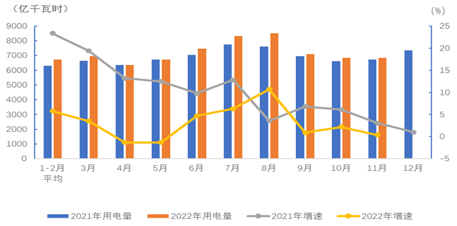 圖4 2021、2022年重點(diǎn)行業(yè)分月用電量情況
