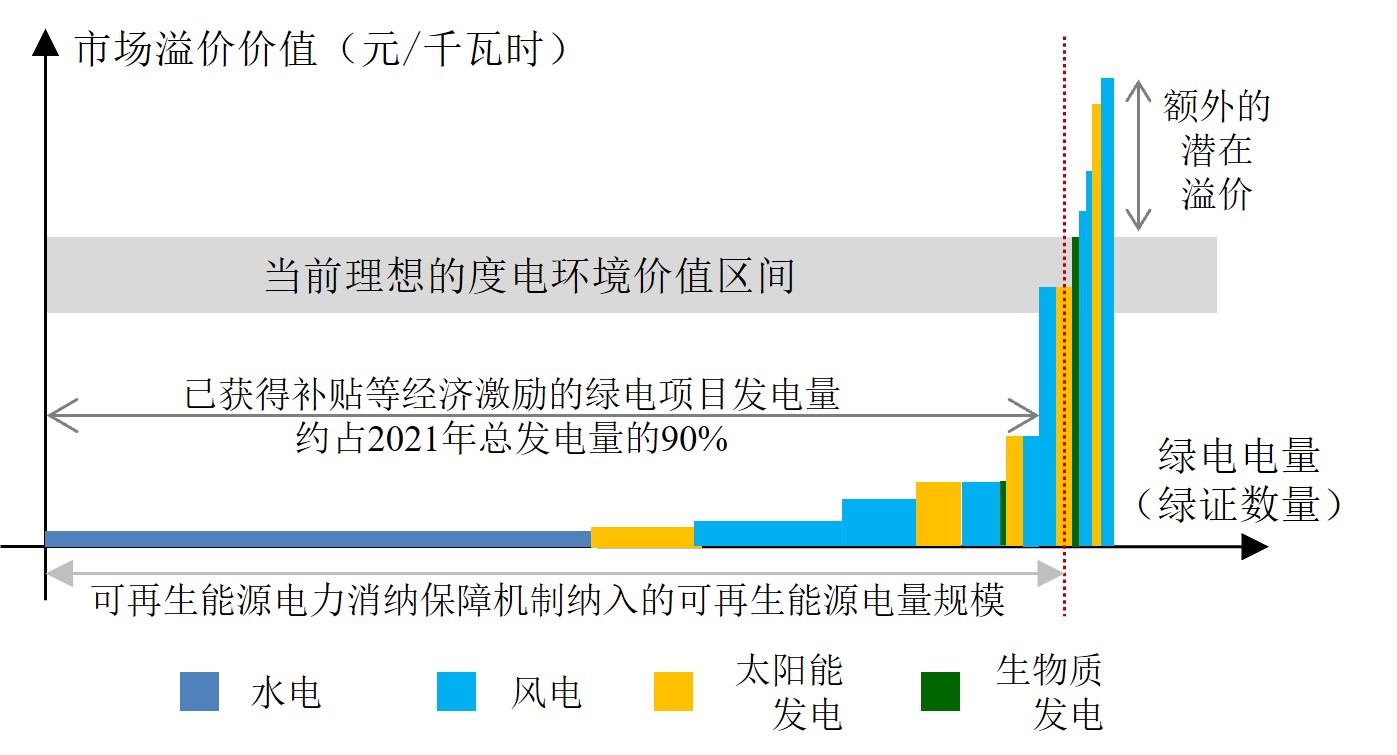 整體來看,盡管當(dāng)前綠電市場化交易規(guī)模正在快速擴大,政府部門和社會各界期望也較高,但與中國可再生能源發(fā)電規(guī)模相比,其市場規(guī)模總體仍然較小、價格相對偏低。
