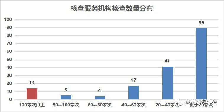 據(jù)上海青悅統(tǒng)計(jì),在170家核查服務(wù)機(jī)構(gòu)中,核查超百家次的核查服務(wù)機(jī)構(gòu)共14家。單次核查最多的核查服務(wù)機(jī)構(gòu)為中國船級(jí)社質(zhì)量認(rèn)證有限公司,核查數(shù)量達(dá)624家次。